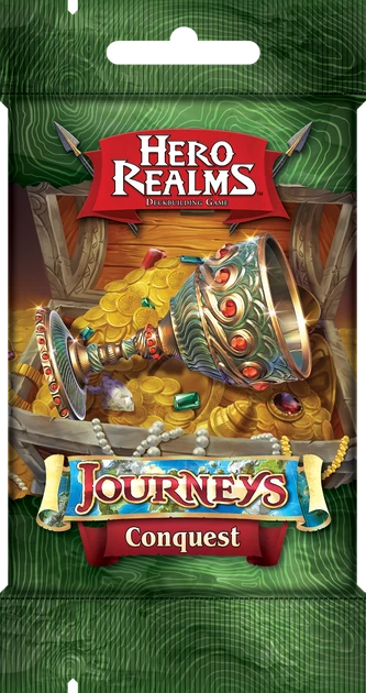 Hero Realms Journeys is a set of four 12-card expansion packs for Hero Realms! Conquest and Discovery add the new Quest and Artifact card types. Quests are secret objectives that players may complete to earn Artifacts! Hunters and Travelers add new champions and actions to the game.