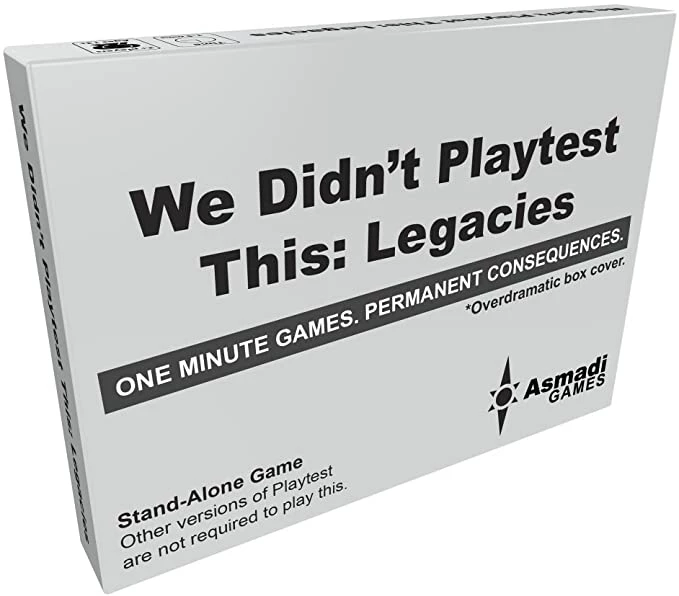 Playtest: Legacies is a full stand-alone game (60 cards plus mystery packs). It may also be combined with the original “We didn’t Playtest This At All” and its expansions.