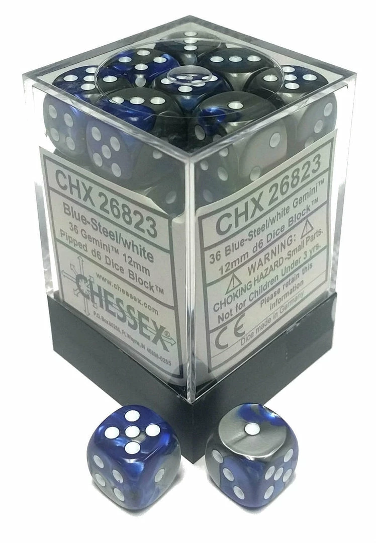 Other Chessex 12mm Gemini Blue Steel/White 36ct D6 Set (26823)