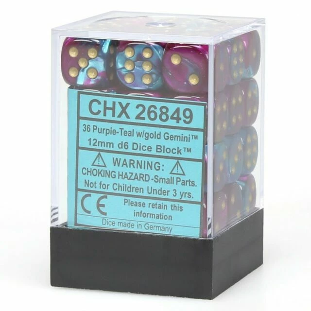 Other Chessex 12mm Gemini Purple Teal/Gold 36ct D6 Set (26849) Dice