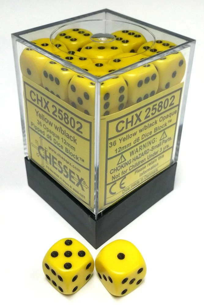This Chessex dice set is simple and easy to read yellow with black numbering. Great for people beginning a die collection or just looking for a new dice set to increase their rolling options.