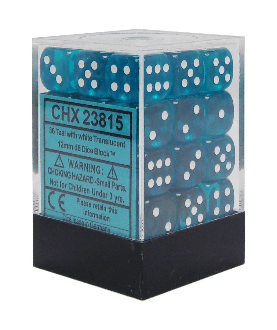 This Chessex dice set is simple and easy to read teal with white numbering. Great for people beginning a die collection or just looking for a new dice set to increase their rolling options.