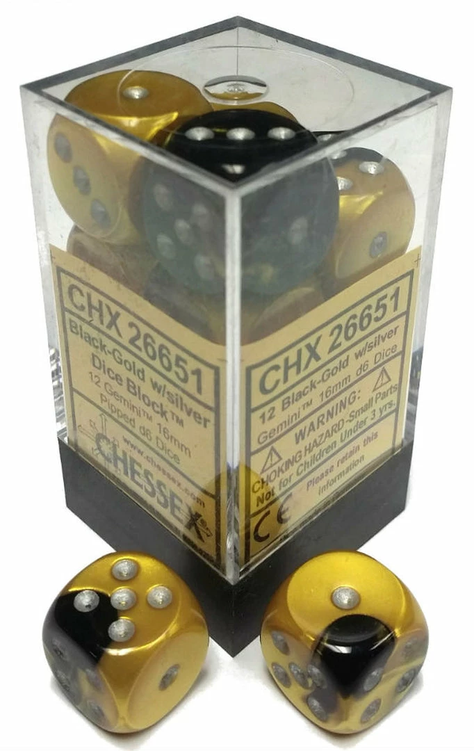 Other Chessex 16mm Gemini Black Gold/Silver 12ct D6 Set (26651)