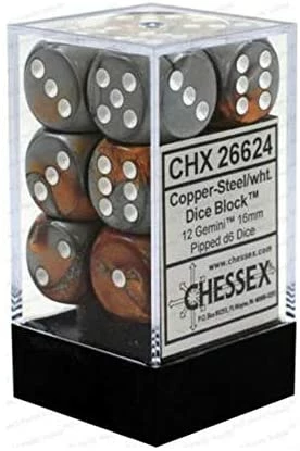 Other Chessex 16mm Gemini Copper-Steel/White 12ct D6 Set (26624) Dice