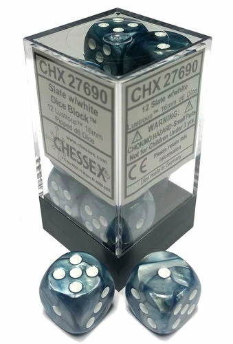 Other Chessex 16mm Lustrous Slate/White 12ct D6 Set (27690)
