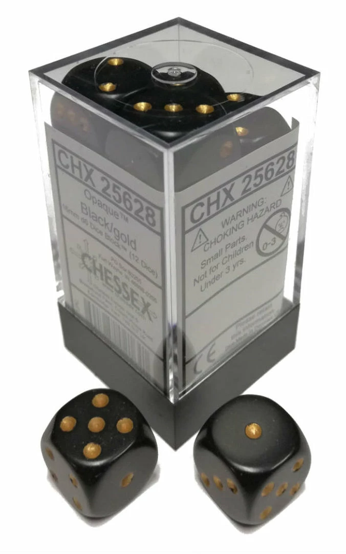Other Chessex 16mm Opaque Black/Gold 12ct D6 Set (27628) Dice