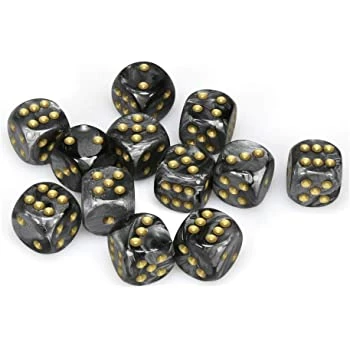 Other Chessex 16mm Opaque Black/Gold 12ct D6 Set (27698) Dice