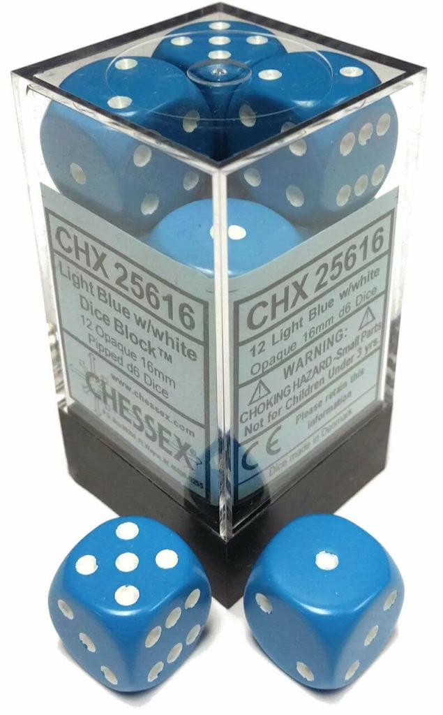 Other Chessex 16mm Opaque Light Blue/White 12ct D6 Set (25616) Dice