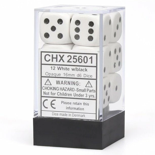 Other Chessex 16mm Opaque White/Black 12ct D6 Set (25601) Dice