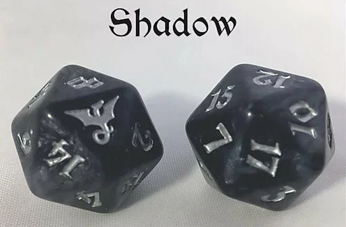 The dragons are attacking! The Dragon d20 comes in several color options and is larger than standard sized d20s (23mm instead of 20mm). It is sized up to match our Dragon d6s which are 19mm. These dice feature a lustrous pearlescent coloring meant to look like billowing dragon breath, a cool medieval era inspired font and a unique dragon design on the max value face