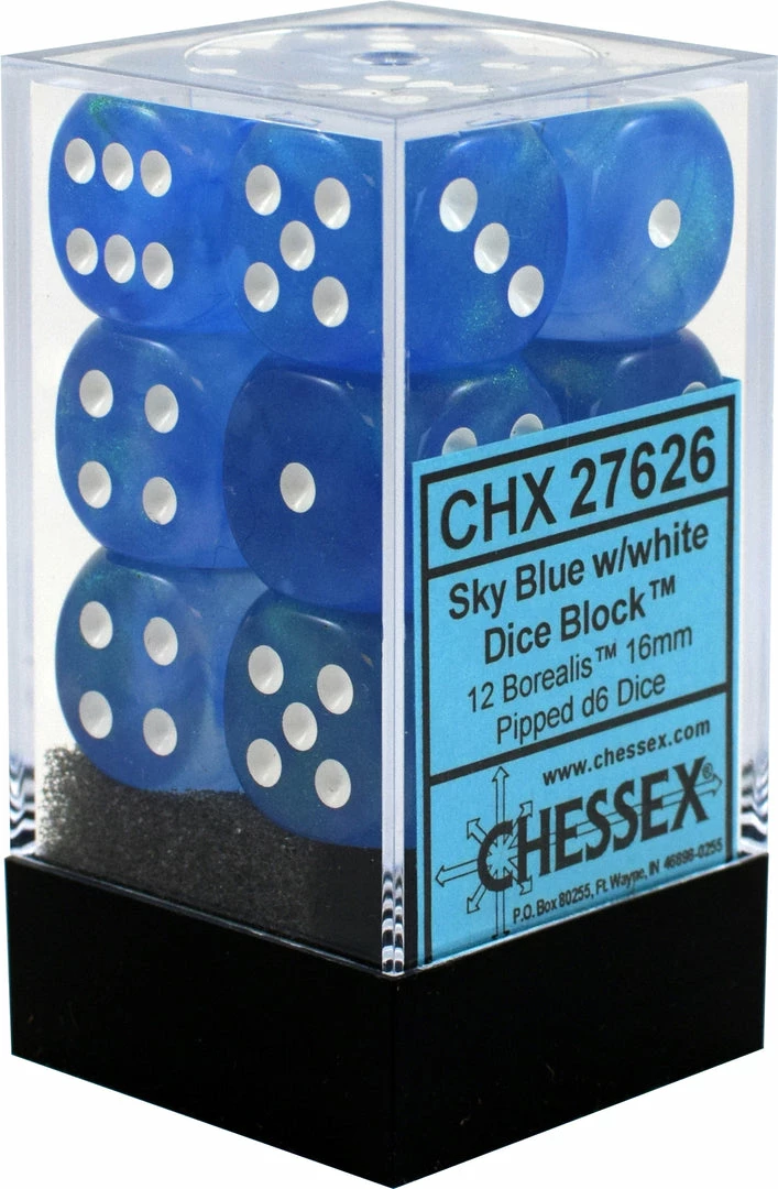 Other Dice Chessex 16mm Borealis Sky Blue/White 12ct D6 Set (27626)