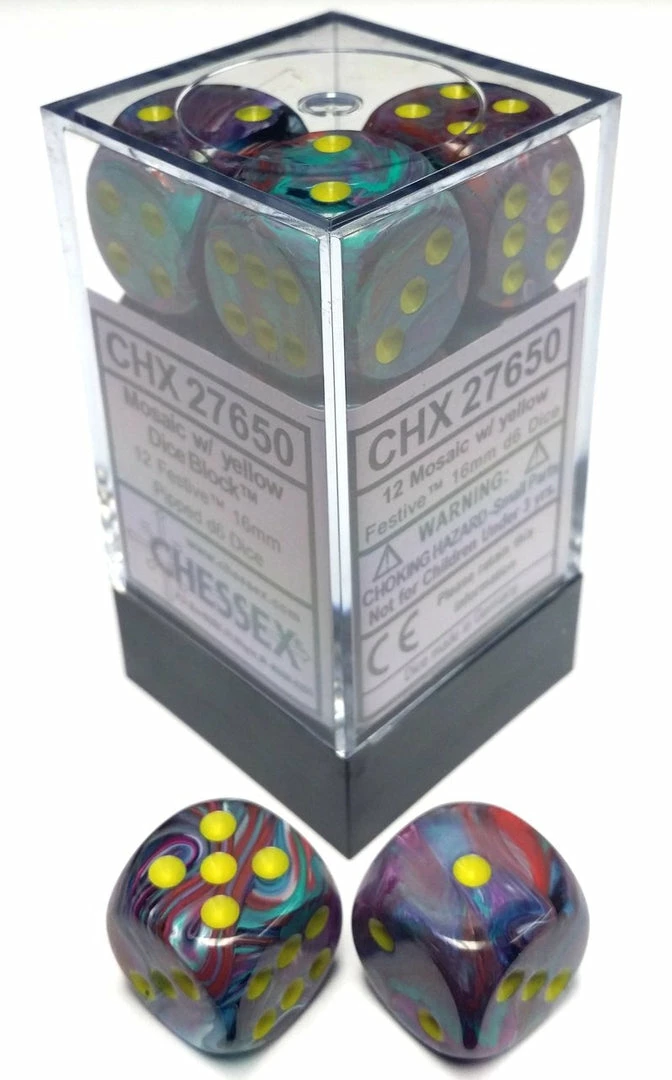 Other Dice Chessex 16mm Festive Mosaic/Yellow 12ct D6 Set (27650)