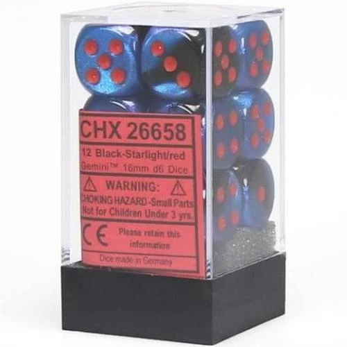 Other Dice Chessex 16mm Gemini Black-Starlight/Red 12ct D6 Set (26658)