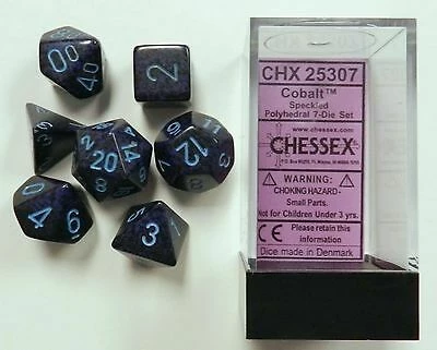 This Chessex dice set is simple and easy to read Cobalt with light blue numbering. Great for people beginning a die collection or just looking for a new dice set to increase their rolling options.