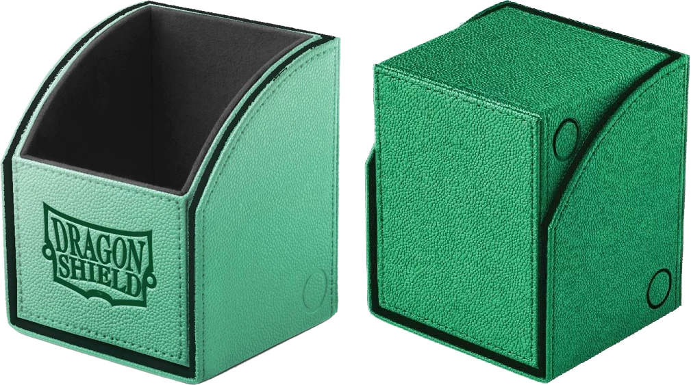 The Dragon Shield’s Nest and Nest+ Deck Boxes offer high-end deck protection with a simple design and strong magnetic seal. Each Nest and Nest+ has a black exterior and classy colored interior fabric. Nest+ Deck Boxes also include a removable dice tray. Piece all 8 product packages together to discover different parts of the story, “Saturion Ascendant,” to discover the origins of the Nest.