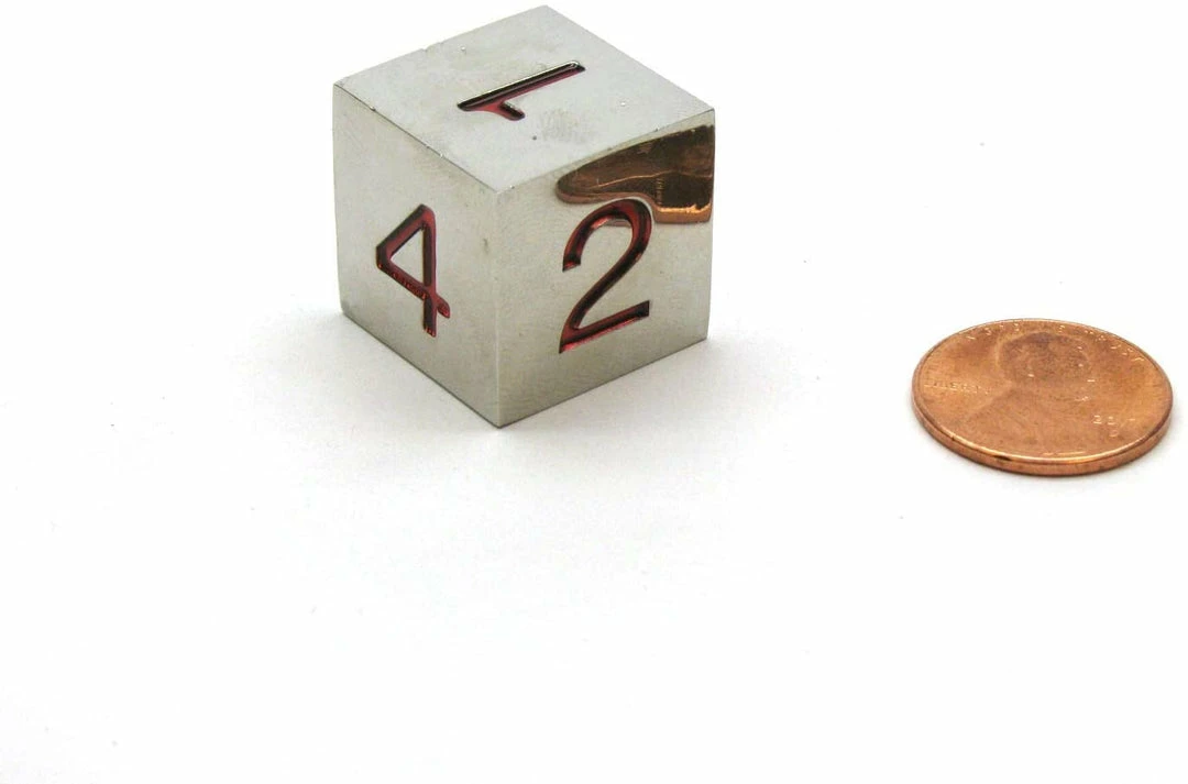You’re going to love the look and feel of this metal die! It has numbers 1 through 6 etched into the surface and painted red.