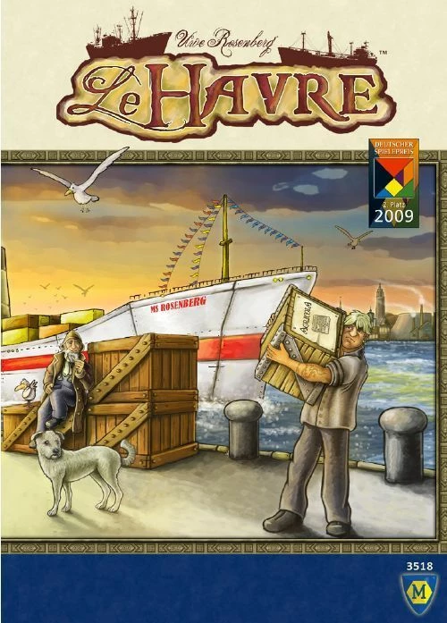 In Le Havre, a player’s turn consists of two parts: First, distribute newly supplied goods onto the offer spaces; then take an action. As an action, players may choose either to take all goods of one type from an offer space or to use one of the available buildings. Building actions allow players to upgrade goods, sell them or use them to build their own buildings and ships. Buildings are both an investment opportunity and a revenue stream, as players must pay an entry fee to use buildings that they do not own. Ships, on the other hand, are primarily used to provide the food that is needed to feed the workers.