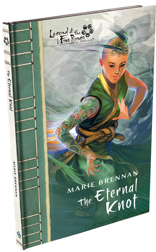 “The Eternal Knot” contains a 112-page story, a, 16-page color insert, and three-copies of two extended art cards for Legend of the Five Rings: The Card Game!