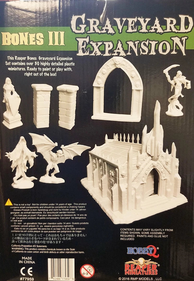 Bones miniatures from Reaper Miniatures are made from a polymer plastic and stand atop a built-in base. The miniatures come unpainted, are as detailed as metal figures, and are light-weight, slightly flexible and very durable. You can remove mold lines, reshape bent parts, cut off the built-in base, and paint the miniature straight out of the package (using miniature paint lines such as Reaper’s Master Series or Master Series HD lines of paint, or you may use artist’s acrylic paints). You can also cut the figures apart to convert them into different poses or change weapons.