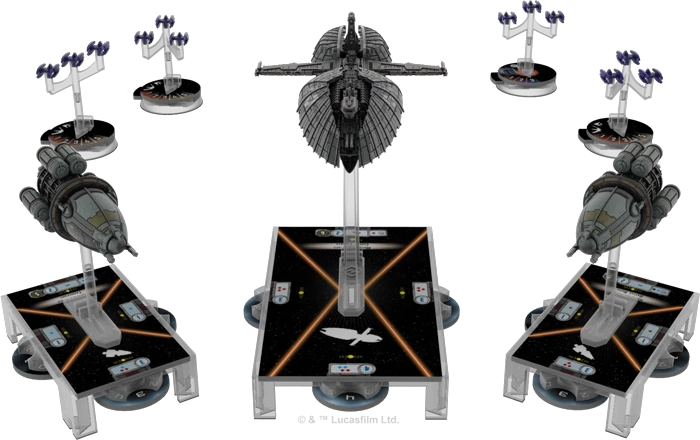This Fleet Starter provides the building blocks for your own Separatist fleet, starting with a Munificent-class Frigate miniature and two Hardcell-class Transport miniatures. These ships are supplemented by four squadrons of Vulture-class Droid Fighters ready to swarm their enemies. In addition to these miniatures, six ship cards give you the power to choose the exact models that make up your fleet and 20 upgrade cards invite you to fine-tune each ship with iconic officers, powerful weapons, and more.