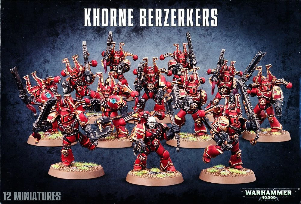 Driven into battle by the frenzied need to kill, Khorne Berzerkers slaughter everything in their path and leave nothing but twitching corpses in their wake. These murderous lunatics have been ritually lobotomised to remove all trace of fear or compassion. In place of these emotions, they receive cortical implants that heighten their already fearsome aggression to psychotic levels.