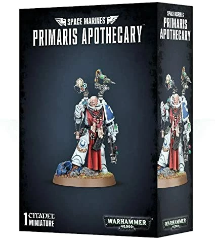 Amongst the most honoured Space Marines of a Chapter are its Apothecaries. It is their role to to mind the physical well-being of their battle-brothers – this is seen most obviously on the battlefield, where an Apothecary serves as an emergency medic. Their most important duty, though, concerns the dead; an Apothecary can harvest the progenoid organs from a fallen Space Marine, ensuring the creation of further warriors and the continuation of the Chapter.