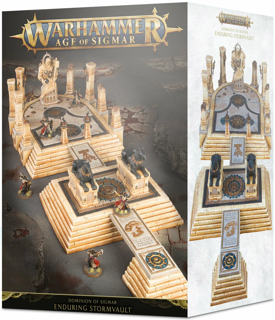 The Enduring Stormvault is a massive terrain set, packed with pillars, temple bases and statuary that’ll transform any gaming table. Occupying almost an entire Realm of Battle tile and packed with intricate runes, symbols and realistic-looking stonework, it’s perfect for transforming your board into a your very corner of the Mortal Realms. If you like, you can use yours as an active Stormvault with a free warscroll, allowing your Heroes to unlock vast power in your battles.