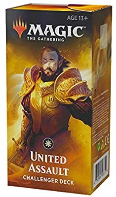 Magic the Gathering Trading Card Game presents the United Assault Challenger Deck! Swarm the board with more small but resilient creatures than your opponent can possibly remove. Take advantage of go-wide synergies and win the game with a few massive attacks! This deck includes a battle-ready 60-card deck, 15-card sideboard, a deck box, and a spindown life counter.