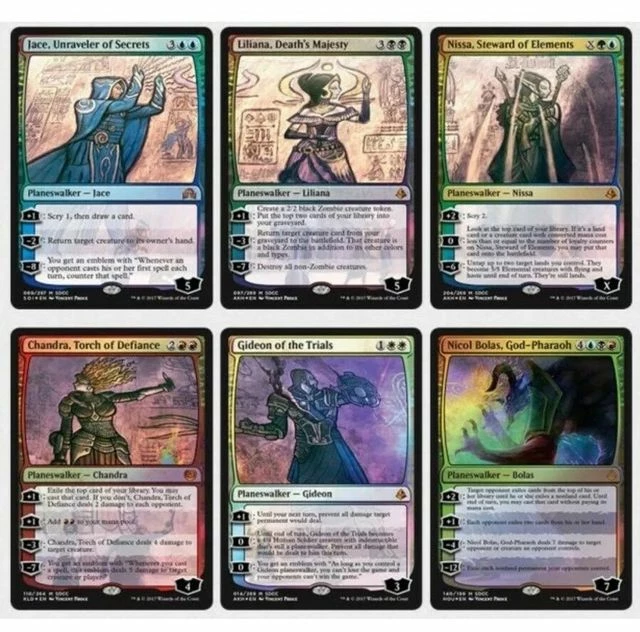 - Characters include Gideon Jura, Jace Beleren, Liliana Vess, Chandra Nalaar, Nissa Revane, & Nicol Bolas