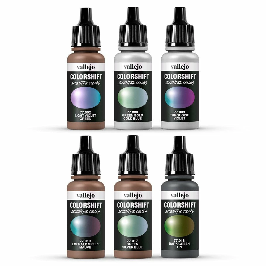 Colorshift, the first range in new Eccentric color series, is a selection of ready to use metallic acrylic airbrush colors. The multichromatic Eccentric Colors pigments used in the formulation of these colors give them a vibrant metallic sparkle, while their glass-like coating acts like a refracting prism. Each flake presents a variety of color depending on the angle of view and incident light; the color shift effect is observable with both high and low-gloss applications and in a wide variety of lighting conditions and is intensified if the colors are applied on a curved surface, while best effects are obtained over a gloss black base color.