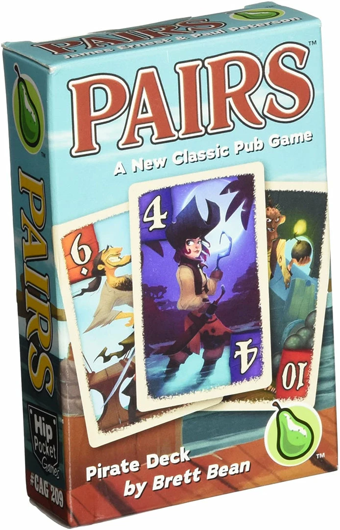 Yarrr! The Pairs Pirate deck is filled with ten scalawags and a half-dozen drinking and gambling variants. Illustrated by Brett Bean, this deck is perfect for all the pirates in your life. Variants will include two games, “Port” and “Starboard.”