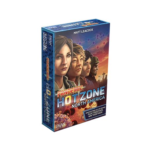 From designer Matt Leacock, Pandemic: Hot Zone – North America is a completely cooperative game in which players win or lose as a team. As members of an elite disease-control unit, you must work together to discover cures to three deadly diseases threatening the continent. Travel from city to city treating cases and preventing outbreaks as you research the cures together. Use your character’s unique abilities and devise a strategy that plays to each player’s strengths—cooperation is key to keeping disaster at bay!