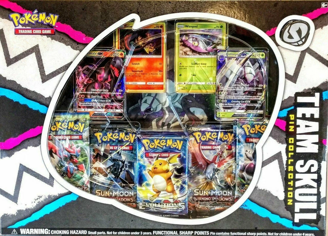 The Pokémon TCG: Team Skull Pin Collection includes: