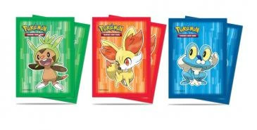 4-color printed Deck Protectors with Ultra PRO’s hologram quality seal. Stores and protects standard sized cards. Features XY Characters Chespin, Fennekin and Froakie. Packed in a mixed Display, 3 of each design. 65-count pack.
