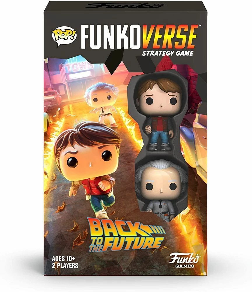 Funkoverse is hitting 88 miles per hour! Who are you calling chicken? Join Doc Brown and Marty McFly on a crazy adventure with Funkoverse, a strategy board game that brings the worlds, characters, and stories you love home for you to enjoy again and again. Highlights Light strategy game. Play as a stand-alone game or mix with other Funkoverse games. Includes: 2 playable maps – Courthouse Square and Café 80’s, as well as 2 exclusive Funkoverse Pop! Game figures.