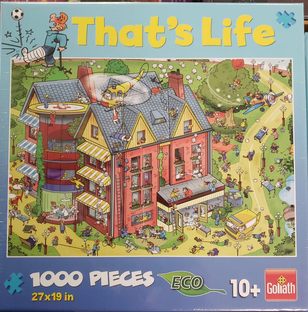 That’s life puzzles feature fun and chaotic detailed scenes. . Each design contains 1000 puzzle pieces. Completed puzzle measures 27 x 19 inches.