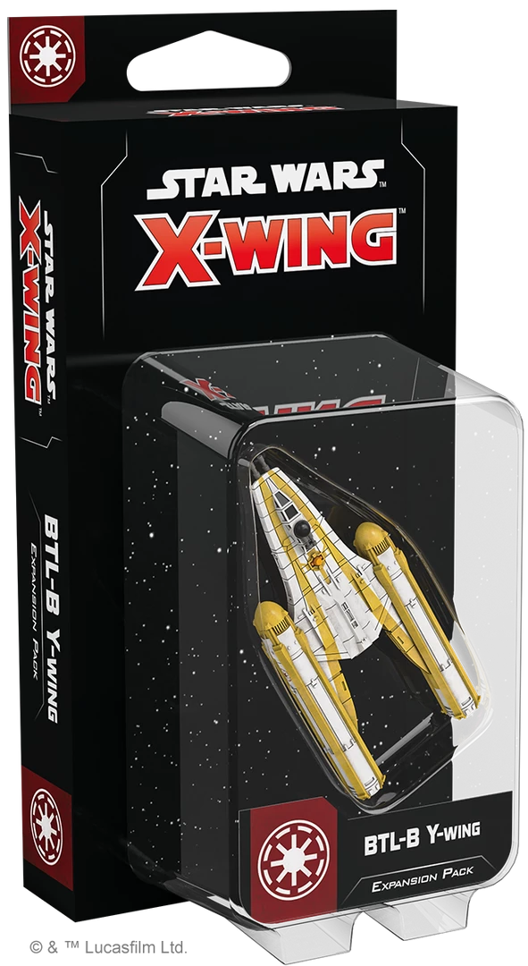 The BTL-B Y-Wing Expansion Pack contains everything you need to add one of these formidable ships to your Galactic Republic squadrons, including a BTL-B Y-wing miniature, eight ship cards, ten upgrade cards, and four Quick Build cards.