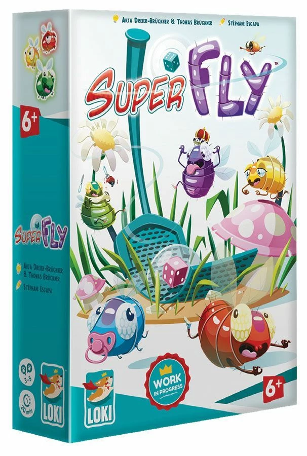 To win Superfly, you need to make a smashing success, squashing all the right bugs along the way. Try to build the biggest collection, with either matching color or series of different flies. Smash your flyswatter on the card you want. Another player is claiming your card? The die on your fly swatter will decide who wins! Reflexes and strategy for an original and fun game!