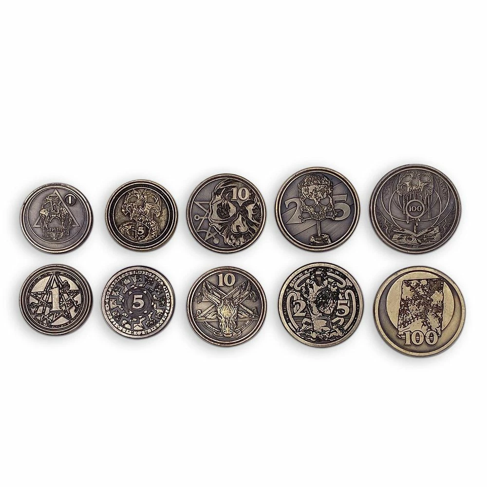 Our metal adventure coins come in sets of 10, that contain pieces 0f 2 of each coin: 1, 5, 10, 25 or 100 in our variety pack. In addition, they are available over 10 unique series/classes: Pirate, Dwarven, Steam Punk, Zombie, Elven, Dubaloons, Roman, Orcs and Goblins, Sci Fi and many more, so you can choose the set that perfectly matches your adventures needs.