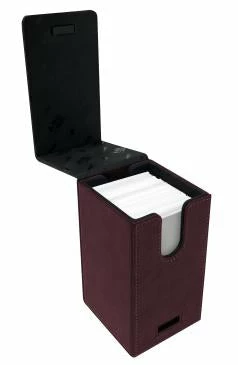 The Alcove Tower Deck Box can hold up to 100 double sleeved cards with its lid secured by strong magnetic closures utilizing multiple magnets for extra protection.
