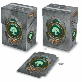 Deck box for holding cards in Deck Protectors sleeves. Acid free, durable polypropylene material. Flip top non-velcro closure. Includes one deck divider. Featuring Green Mana art for Magic: the Gathering.