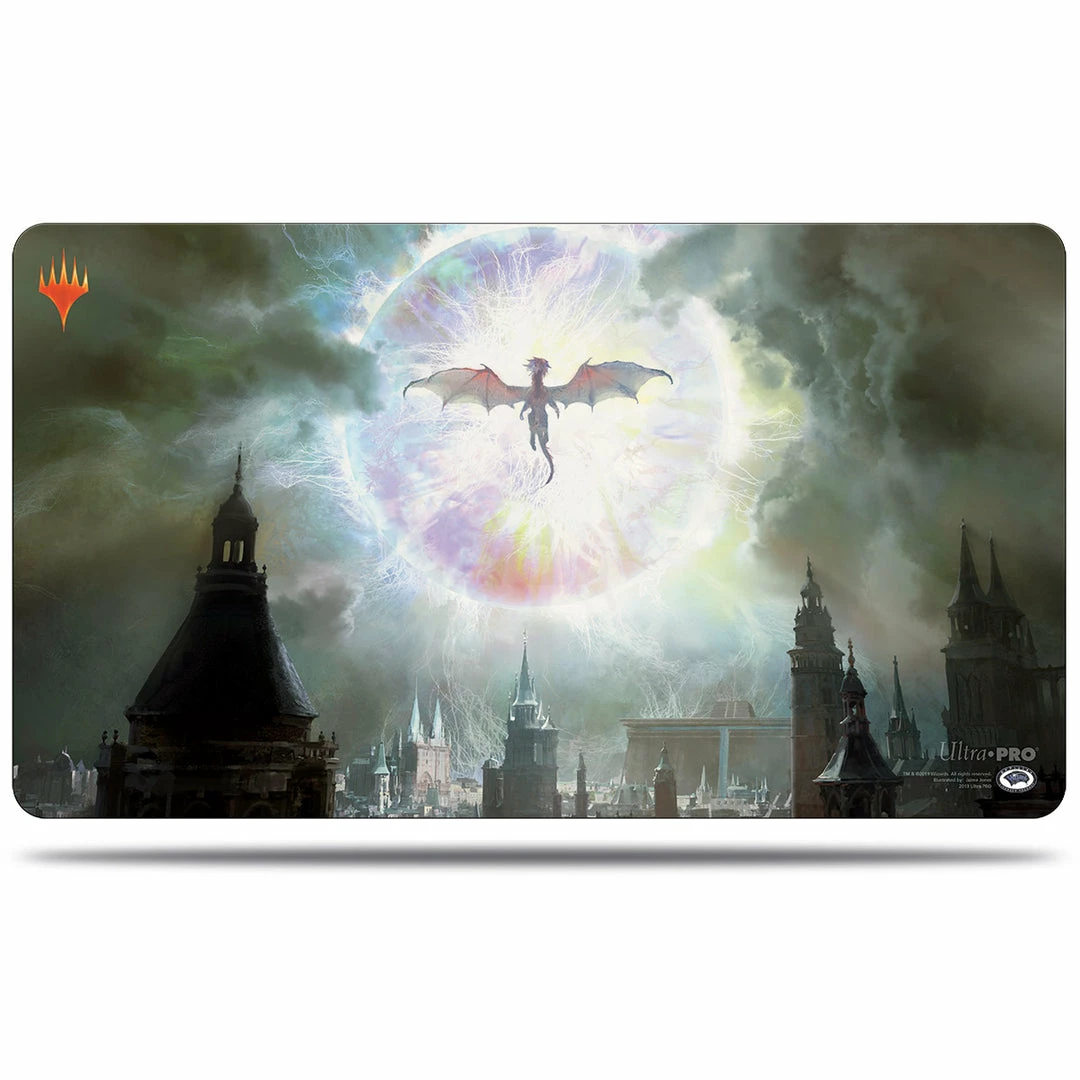 Up your game at your next game night with these official Magic: The Gathering playmats showcasing highly detailed and vibrant artwork from popular trading card game. Made with a premium fabric top to prevent damage to cards during game play for tabletop gamers. With dimensions of approximately 24″ X 13-1/2″, this playmat is also the perfect decorative over sized mouse pad for computer and laptop workstations. Non-slip rubber backing lets the playmat lay flat and prevents it from shifting during use.