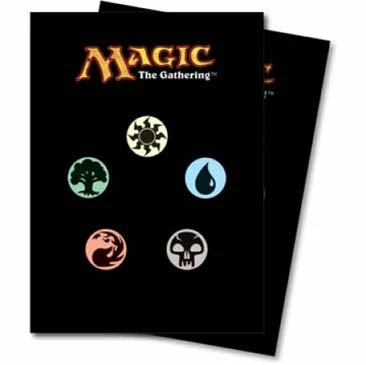 Standard Size 2.64″ x 3.63″ (67.03mm x 92.07mm). 80ct pack. Made with archival-safe, acid-free non-PVC materials. Features all mana symbols on black background.