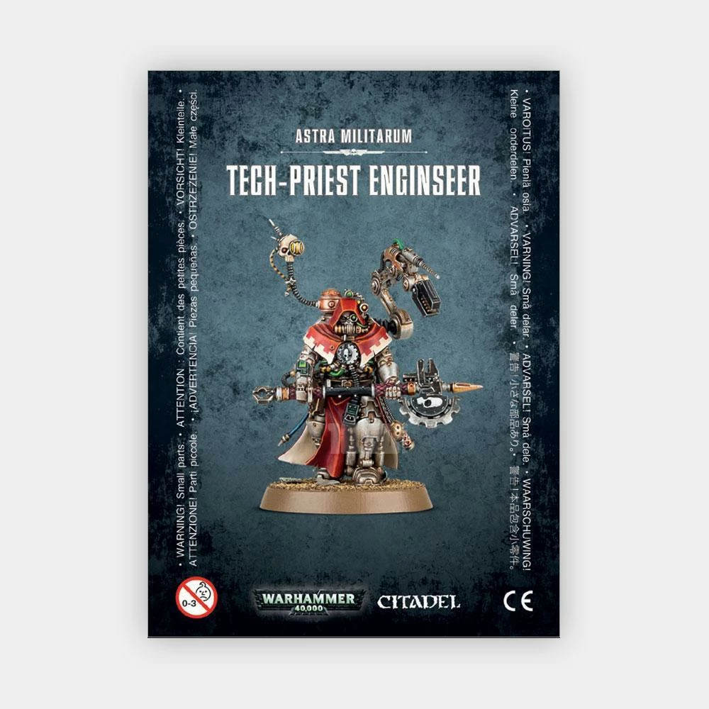 This multi-part plastic kit contains all the components necessary to assemble one Tech-Priest Enginseer, armed with a cog axe, censer and holstered pistol. Supplied with a Citadel 32mm Round base.