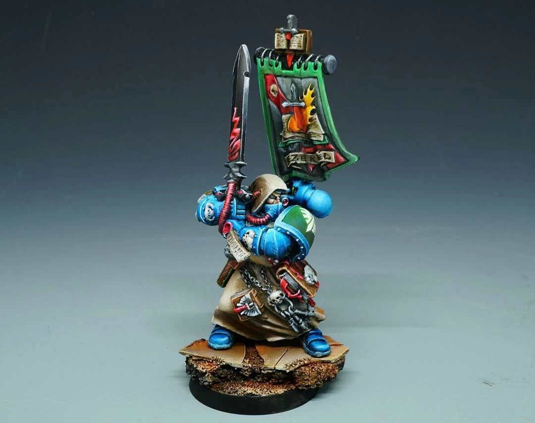 This blister contains one metal Ezekiel, Grand Master of Librarians. This finely-detailed Citadel miniature is armed with a force weapon and comes with a metal backpack and banner with sculpted Dark Angels detailing. Model supplied with a 25mm round base.