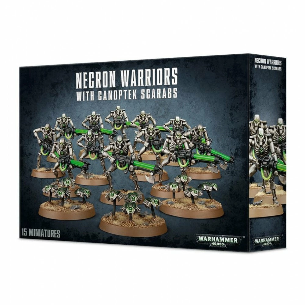 - The main Necron battle line unit Warriors contains 13 plastic, push-fit miniatures: – 10 Warriors and 3 Canoptek Scarabs Swarms