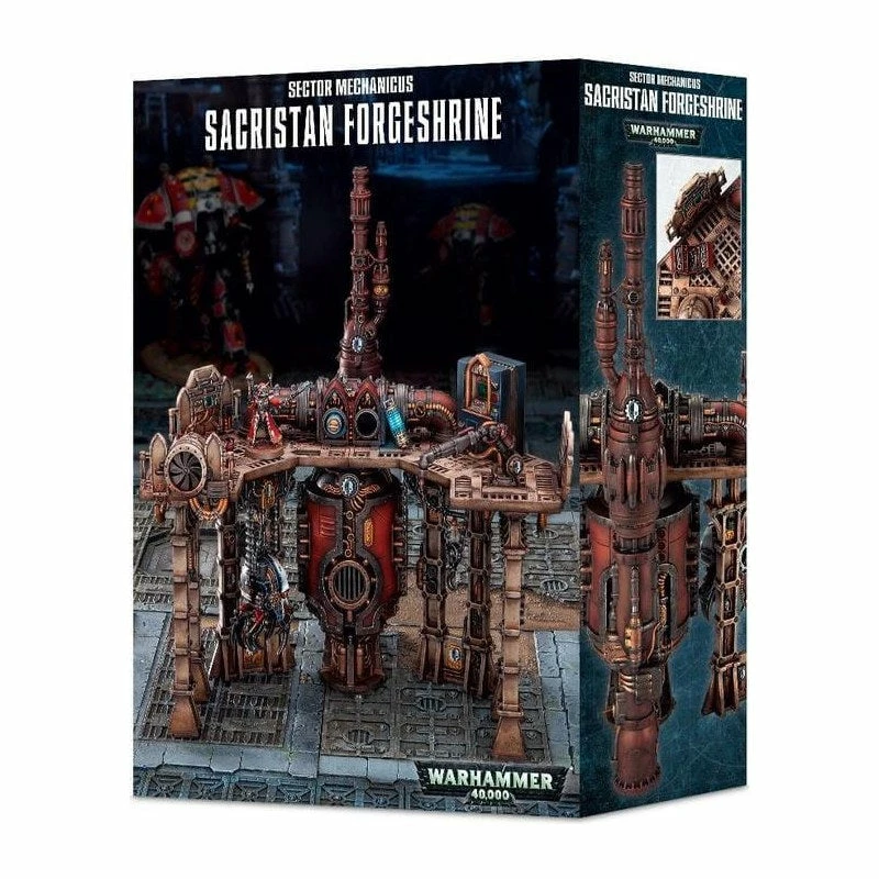 – A Sacristan Forgeshrine frame, including a control point with space for 2 fusion batteries, which can be placed in the control point and removed at will, an operating console featuring keyboard and screen, 2 pipes, a welder arm, a toolbox and fire extinguisher;