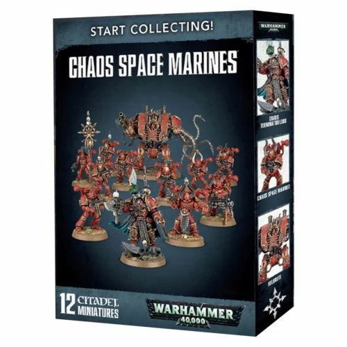 This is a great-value box set that gives you an immediate collection of fantastic Chaos Space Marines miniatures, which you can assemble and use right away in games of Warhammer 40,000! You’ll receive a ten-man set of Chaos Space Marines, a Chaos Terminator Lord and a Chaos Helbrute.