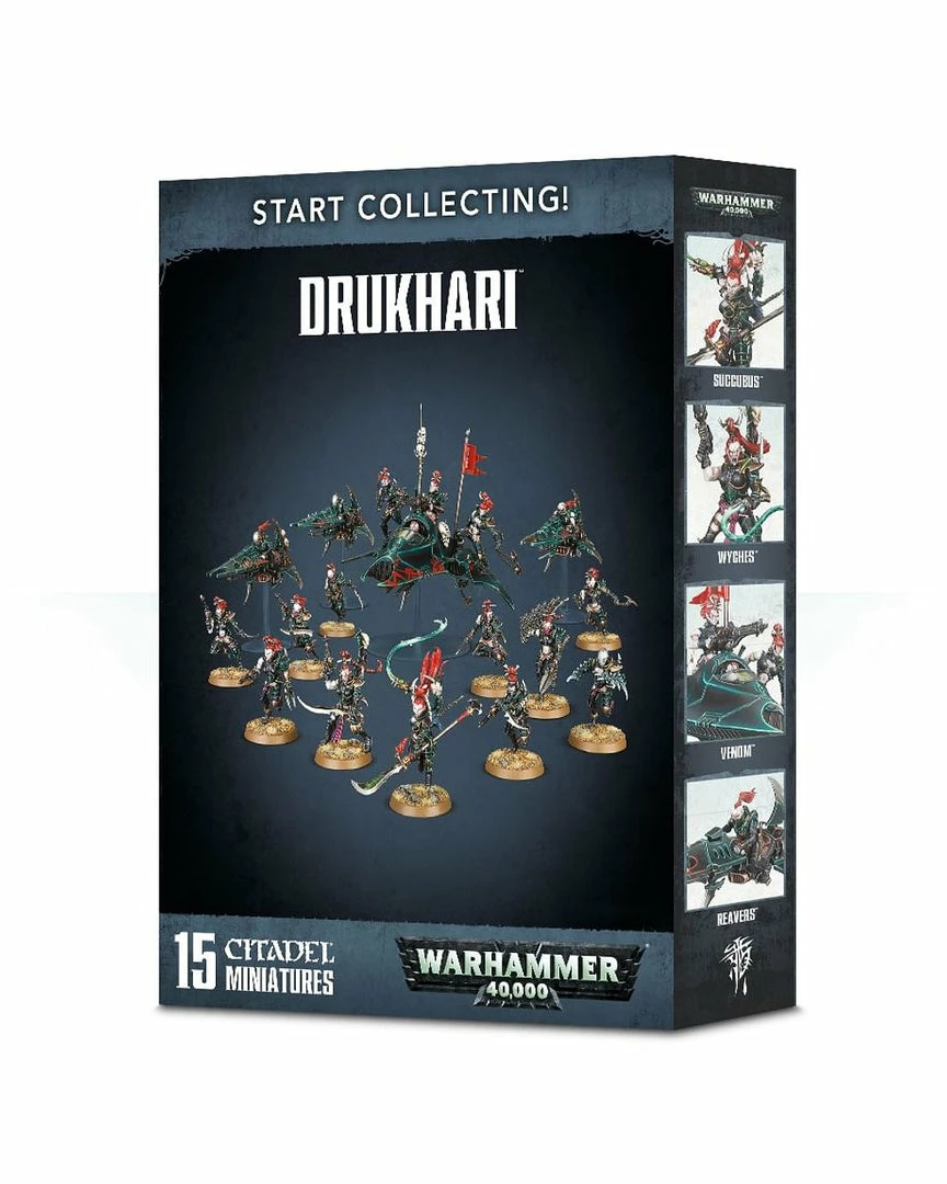 This is a great-value box set that gives you an immediate collection of fantastic Drukhari miniatures, which you can assemble and use right away in games of Warhammer 40,000! You’ll receive a Succubus, a set of 10 Wyches, a Venom and 3 Reavers.