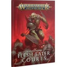 Battletome: Flesh-eater Courts is the comprehensive guide to collecting and fielding the cannibalistic monstrosities of the Flesh-eater Courts. In thrall to a deep delusion, these unwitting servants of Death believe themselves to be noble knights and warriors – instead, they are savage, degenerate killers.